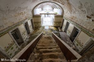 Le lieu a tout pour plaire : un bâtiment immense avec une histoire sordide, abandonné depuis au moins 30 ans, du decay parfait (en langage non urbexien, ça veut dire de la poussière, des peintures qui craquellent, de la végétation qui rentre par les fenêtres… En somme, un état de dégradation naturelle avancée). Même s’il reste peu de mobilier, la lieu est splendide. On prend beaucoup de plaisir à déambuler dans ces longs couloirs chargés d’histoire, à se perdre et se retrouver (c’est un vrai labyrinthe !), à tomber ici et là sur les pièces les plus remarquables. En résumé, un grand moment d’exploration. Pour nous la visite a duré 5 heures.